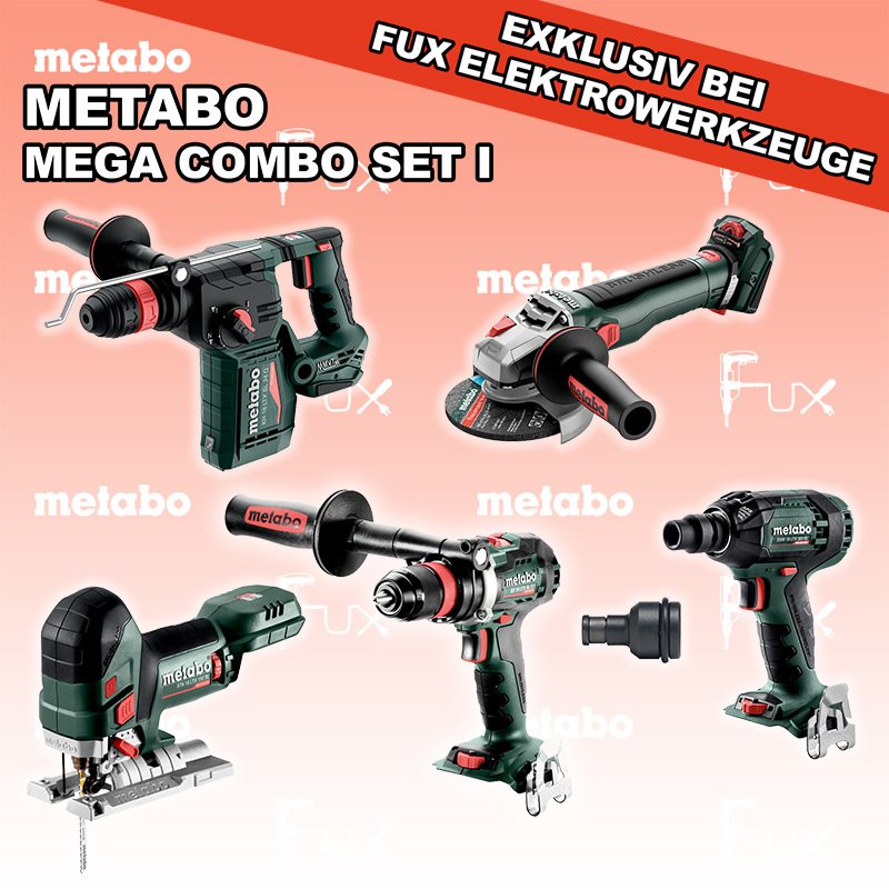 Heute auf dieses Produkt 44% Rabatt! Zu "Combo Set 18 Volt " von Metabo FULL Service: 36 Monate zum Nulltarif für Sie! Weitere Infos zum FULL Service Dieses Produkt ist CAS kompatibel! Weitere Infos zu CAS Black Fuxday Aktionen FUX SPECIAL EXKLUSIV BEI FUX Metabo Mega Combo Set 1 SOLO Bestell- und Artikelnummer: Mega Combo Set 1 SOLO STA 18 LTX 150 BL Akku-StichsägeAkkuspannung 18 V Hubzahl 1.000-3.500 /min Gewicht ohne Akkupack 1,9 kgInfos KH 18 LTX BL 24 Q Akku-KombihammerAkkuspannung 18 V Einzelschlagstärke 2.2 J Bohrleistung in Beton 24 mm Gewicht ohne Akkupack 3 kgInfos BS 18 LTX BL Q I Akku-BohrschrauberAkkuspannung 18 V Drehzahl 0-550 / 0-2000 U/min Drehmoment hart / weich 130 / 65 Nm Gewicht (mit Akkupack) 2.3 kgInfos WVB 18 LT BL 11-125 Quick Akku-WinkelschleiferAkkuspannung 18 V Drehzahl 2.800 - 10.000 / min Ø 125 mm Scheiben Gewicht (mit Akkupack) 2.5 kgInfos SSW 18 LTX 300 BL Akku-SchlagschrauberAkkuspannung 18 V Anziehdrehmoment 300 Nm Werkzeugaufnahme 1/2" Gewicht 1.7 kgInfos Reduktions Adapter 1/2" auf 1/4" Aufnahme Max. 350 Nm Länge 45 mmInfos Ergattere dir einen zweiten Akku bei der Registration auf metabo.ch Alle Produkte dieser Aktion anzeigen OHNE AKKUS UND LADEGERÄT Standard-Ausrüstung In diesem Set enthalten: STA 18 LTX 150 BL Akku-Stichsäge KH 18 LTX BL 24 Q Akku-Kombihammer BS 18 LTX BL Q I Akku-Bohrschrauber WVB 18 LT BL 11-125 Quick Akku-Winkelschleifer SSW 18 LTX 300 BL Akku-Schlagschrauber Reduktions Adapter Zubehör Verbrauchsmaterial Listenpreis CHF 1'780.00 Fuxpreis CHF 984.00 inkl. 8.1% MwSt, inkl vRG Frankolieferung Kein Grauimport! Produkt bestellen 1 Stück 2 Stück 3 Stück 4 Stück 5 Stück 6 Stück 7 Stück 8 Stück 9 Stück 10 Stück Alle Angaben ohne Gewähr und solange Vorrat reicht!Wiederverkäufer werden? Produkt als PDFVideo LiHD 1Video LiHD 2 AKTION 44%