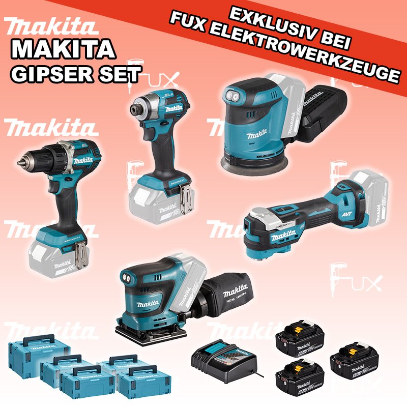 Zu "Gipser Set" von Makita FUX SPECIAL EXKLUSIV BEI FUX Makita Gipser Set 7 Bestell- und Artikelnummer: maGipser Set 7 DDF484ZJ Akku-BohrschrauberAkkuspannung 18 V Drehzahlen 0-500 / 0-2000 U/min Drehmoment hart / weich 54 / 30 Nm Gewicht 1.5 kgInfos DTD173Z Akku-SchlagschrauberAkkuspannung 18 V Anziehdrehmoment 20 / 50 / 170 / 180 Nm Werkzeugaufnahme 1/4" (Innensechskant) Gewicht inkl. Akku 1.2 - 1.5 kgInfos DTM52Z Multifunktions WerkzeugAkkuspannung 18 V Schwingungen 10000 - 20000 min-1 Werkzeugaufnahme Starlock Max System Gewicht inkl. Akku 2.0 kg Infos DBO480ZJ Akku-SchwingschleiferAkkuspannung 18 V Schleifplattengröße 112 x 102 mm Schwingungen pro Minute 11 000 / 14 000 min⁻¹ Gewicht inkl. Akku 1.7 kgInfos DBO180ZJ Akku-ExzenterschleiferAkkuspannung 18 V Exzenterhub 2,8 mm Schleifteller (Ø) 125 mm Gewicht 3.6 kgInfos 3 x BL 1860 B ( Li-Ion Akku )18 V 6.0 Ah ( Li-Ion Akku ) Infos DC 18 RC Schnell-Ladegerätfür Akkus 14.4 - 18 Volt ( Li-Ion Akkus )Infos MAKPAC Gr. 2Produktabmessung (L x B x H) 395 x 295 x 163 mm Infos Einsatz für diverse Schlagschrauber Einsatz für DDF083, DDF483, DHP483, DTD134, DTD137, DTD146, DTD148, DTD152, DTD153, DTD154, DTD155, DTD170, DTD171, DTP131, DTP141, DTS130, DTS131, DTS141, DTW180, DTW181, DTW250, DTW251, DTW284, DTW285Infos MAKPAC Gr. 3Produktabmessung (L x B x H) 377 x 277 x 176 mm Infos Einsatz für DTM52 Einsatz für DTM52 Makpac Koffer Typ C (821551-8) Infos Standard-Ausrüstung In diesem Set enthalten: DDF484ZJ Akku-Bohrschrauber DTD173Z Akku-Schlagschrauber DTM52Z Multifunktions Werkzeug DBO480ZJ Akku-Schwingschleifer DBO180ZJ Akku-Exzenterschleifer 3 x BL 1860 B ( Li-Ion Akku ) DC 18 RC Schnell-Ladegerät MAKPAC Gr. 2 Einsatz für diverse Schlagschrauber MAKPAC Gr. 3 Einsatz für DTM52 Geliefert im Koffer Zubehör Listenpreis CHF 1'883.00 Fuxpreis CHF 1'275.00 inkl. 8.1% MwSt, inkl vRG Versand CHF 20.00 Kein Grauimport! Produkt bestellen 1 Stück 2 Stück 3 Stück 4 Stück 5 Stück 6 Stück 7 Stück 8 Stück 9 Stück 10 Stück Option: Makita BL 1860 B ( Li-lon Akku ) für CHF 95.- statt CHF 124.-Infos Alle Angaben ohne Gewähr und solange Vorrat reicht!Wiederverkäufer werden? Produkt als PDF NEUHEITAKTION 32%