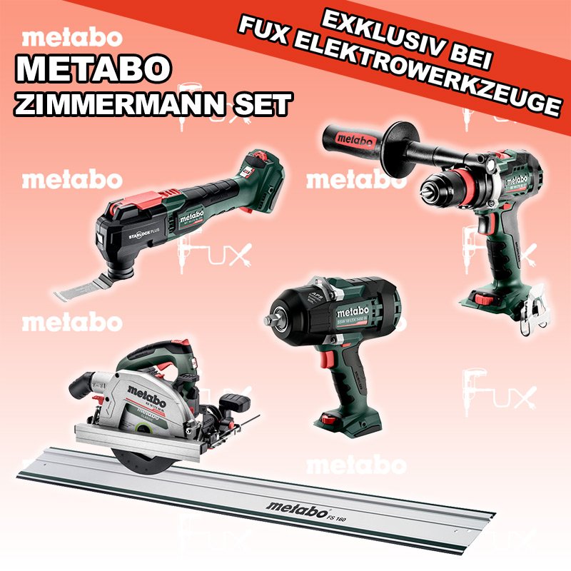 Heute auf dieses Produkt 27% Rabatt! Zu "Zimmermann Set" von Metabo FULL Service: 36 Monate zum Nulltarif für Sie! Weitere Infos zum FULL Service Dieses Produkt ist CAS kompatibel! Weitere Infos zu CAS Black Fuxday Aktionen FUX SPECIAL EXKLUSIV BEI FUX Metabo Zimmermann SET 18 SOLO Bestell- und Artikelnummer: Zimmermann SET 18 SOLO BS 18 LTX BL Q I Akku-BohrschrauberAkkuspannung 18 V Drehzahl 0-550 / 0-2000 U/min Drehmoment hart / weich 130 / 65 Nm Gewicht (mit Akkupack) 2.3 kgInfos MT 18 LTX BL QSL Akku-Multitool Akkuspannung 18 V Schwingzahl bei Leerlauf 8.000 - 20.000 /min Schleifplatte, Maß Eck zu Eck 93 mm Gewicht 1.7 kgInfos SSW 18 LTX 1450 BL Akku-SchlagschrauberAkkuspannung 18 V Anziehdrehmoment 1450 Nm Werkzeugaufnahme 1/2" Infos KS 18 LTX 66 BL Akku HandkreissägeAkkuspannung 18 V Schnitt-Tiefe bei 90° 0-66 mm Sägeblatt 165 mm Gewicht 4.5 kgInfos FS 160 FührungsschieneGesamtlänge 1600 mmInfos Registriere die in diesem Set vorhandenen Metabo Maschinen auf metabo.ch, und ergattere dir bis zu 5 Gratis Akkus!Zusätzlich offerieren wir zu diesem Set einen Gratis Akku!OHNE AKKUS UND LADEGERÄT Standard-Ausrüstung In diesem Set enthalten: BS 18 LTX BL Q I Akku-Bohrschrauber MT 18 LTX BL QSL Akku-Multitool SSW 18 LTX 1450 BL Akku-Schlagschrauber KS 18 LTX 66 BL Akku Handkreissäge FS 160 Führungsschiene Listenpreis CHF 1'670.50 Fuxpreis CHF 1'208.00 inkl. 8.1% MwSt, inkl vRG Versand CHF 25.00 Kein Grauimport! Produkt bestellen 1 Stück 2 Stück 3 Stück 4 Stück 5 Stück 6 Stück 7 Stück 8 Stück 9 Stück 10 Stück Alle Angaben ohne Gewähr und solange Vorrat reicht!Wiederverkäufer werden? Produkt als PDF NEUHEITAKTION 27%