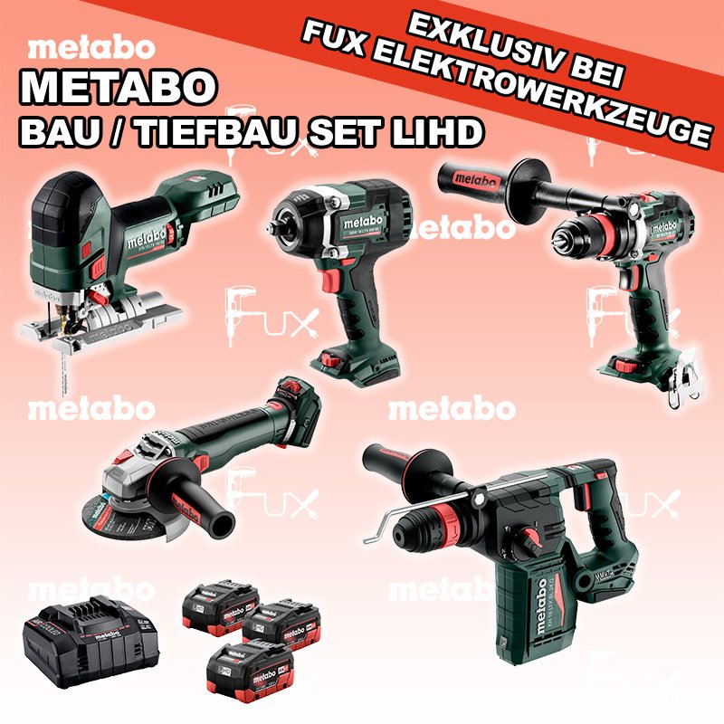 Heute auf dieses Produkt 31% Rabatt! Zu "Bau / Tiefbau Set" von Metabo FULL Service: 36 Monate zum Nulltarif für Sie! Weitere Infos zum FULL Service Black Fuxday Aktionen FUX SPECIAL EXKLUSIV BEI FUX Metabo Bau / Tiefbau Set 4 LiHD Bestell- und Artikelnummer: Bau / Tiefbau Set 4 LiHD BS 18 LTX BL Q I Akku-BohrschrauberAkkuspannung 18 V Drehzahl 0-550 / 0-2000 U/min Drehmoment hart / weich 130 / 65 Nm Gewicht (mit Akkupack) 2.3 kgInfos STA 18 LTX 150 BL Akku-StichsägeAkkuspannung 18 V Hubzahl 1.000-3.500 /min Gewicht ohne Akkupack 1.9 kgInfos Akku-Kombihammer KH 18 LTX BL 28 Q Akkuspannung 18 V Einzelschlagstärke 3 J Bohrleistung in Beton 28 mm Gewicht ohne Akkupack 3,4 kgInfos WB 18 LTX BL 15-125 Quick Akku-Winkelschleifer Akkuspannung 18 V so stark wie ein 1500 Watt Netzgerät Drehzahl 10000 U / min Ø 125 mm Scheiben Gewicht mit Akkupack 2,7 kgInfos SSW 18 LTX 800 BL Akku-Schlagschrauber Akkuspannung 18 V Anziehdrehmoment 800 Nm Werkzeugaufnahme 1/2" Gewicht 2.6 kgInfos 3 x 18 V, 5.5 Ah, LiHD Akkupack18 V 5.5 Ah ( LiHD Akkus ) Infos ASC 145, 12 - 36 V "Air Cooled" LadegerätZum Aufladen aller Li-Power Schiebesitz-Akkupacks (12 V - 36 V). Ladestrom 8.0 AInfos Registriere die in diesem Set vorhandenen Metabo Maschinen auf metabo.ch, und ergattere dir bis zu 5 Gratis Akkus!Zusätzlich offerieren wir zu diesem Set einen Gratis Akku! Standard-Ausrüstung In diesem Set enthalten: BS 18 LTX BL Q I Akku-Bohrschrauber STA 18 LTX 150 BL Akku-Stichsäge Akku-Kombihammer KH 18 LTX BL 28 Q WB 18 LTX BL 15-125 Quick Akku-Winkelschleifer SSW 18 LTX 800 BL Akku-Schlagschrauber 3 x 18 V, 5.5 Ah, LiHD Akkupack ASC 145, 12 - 36 V "Air Cooled" Ladegerät Listenpreis CHF 2'387.00 Fuxpreis CHF 1'624.00 inkl. 8.1% MwSt, inkl vRG Frankolieferung Kein Grauimport! Produkt bestellen 1 Stück 2 Stück 3 Stück 4 Stück 5 Stück 6 Stück 7 Stück 8 Stück 9 Stück 10 Stück Alle Angaben ohne Gewähr und solange Vorrat reicht!Wiederverkäufer werden? Produkt als PDF NEUHEITAKTION 31%