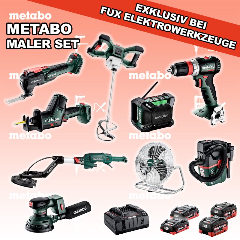 Zu "Maler Set" von Metabo FUX SPECIAL EXKLUSIV BEI FUX Metabo Maler Set 6 Bestell- und Artikelnummer: Maler Set 6 FULL Service: 36 Monate zum Nulltarif für Sie! Weitere Infos zum FULL Service BS 18 L BL Q Akku-BohrschrauberAkkuspannung 18 V Drehzahl 0 - 500 / 0 - 1700 /min Drehmoment hart / weich 60 / 28 Nm Gewicht (mit Akkupack) 1.3 kgInfos RW 18 LTX BL 120 Akku-RührwerkAkkuspannung 18 V Max. Rührkorb-Durchmesser 120 mm Max. empfohlene Mischmenge 30 l Werkzeugaufnahme Innengewinde M 14 Infos AS 18 L PC Compact Akku-Sauger Akkuspannung 18 V Luftleistung max. 2100 l/min Unterdruck 120 hPa (mbar) Behältervolumen 6 lInfos R 12-18 DAB+ BT Akku-BaustellenradioDAB+ Akkuspannung 12 V / 18 V Extreme Akkupacks mit 14,4 und 18 Volt Gewicht 1.85 kgInfos SSE 18 LTX BL Compact Akku-SäbelsägeAkkuspannung 18 V Hubzahl 0-3000 min-1 Hublängen 16 mm Gewicht (mit Akkupack) 1.8 kgInfos MT 18 LTX BL QSL Akku-Multitool Akkuspannung 18 V Schwingzahl bei Leerlauf 8.000 - 20.000 /min Schleifplatte, Maß Eck zu Eck 93 mm Gewicht 1.7 kgInfos AV 18 Akku-VentilatorAkkuspannung 18 V Max. Luftgeschwindigkeit 3,8 m/s Flügeldurchmesser 355 mm Gewicht (mit Akkupack) 1,2 kgInfos SXA 18 LTX 125 BL Exzenterschleifer Akkuspannung 18 V Durchmesser des Stütztellers 125 mm Leerlaufdrehzahl 4000 - 10000 /min Gewicht (mit Akkupack) 1.7 kg Infos LSV 5-225 Comfort LanghalsschleiferLeistungsaufnahme 500 Watt Durchmesser Schleifteller 225 mm Leerlaufdrehzahl 1000 - 1650 min-1 Gewicht 4.5 kgInfos 2 x 18 V, 4.0 Ah, LiHD Akkupack18 V 4.0 Ah ( LiHD Akkus ) Infos 2 x 18 V, 5.5 Ah, LiHD Akkupack18 V 5.5 Ah ( LiHD Akkus ) Infos ASC 145, 12 - 36 V "Air Cooled" LadegerätZum Aufladen aller Li-Power Schiebesitz-Akkupacks (12 V - 36 V). Ladestrom 8.0 AInfos Registriere die in diesem Set vorhandenen Metabo Maschinen auf metabo.ch, und ergattere dir bis zu 5 Gratis Akkus!Zusätzlich offerieren wir zu diesem Set einen Gratis Akku! Standard-Ausrüstung In diesem Set enthalten: BS 18 L BL Q Akku-Bohrschrauber RW 18 LTX BL 120 Akku-Rührwerk AS 18 L PC Compact Akku-Sauger R 12-18 DAB+ BT Akku-Baustellenradio SSE 18 LTX BL Compact Akku-Säbelsäge MT 18 LTX BL QSL Akku-Multitool AV 18 Akku-Ventilator SXA 18 LTX 125 BL Exzenterschleifer LSV 5-225 Comfort Langhalsschleifer 2 x 18 V, 4.0 Ah, LiHD Akkupack 2 x 18 V, 5.5 Ah, LiHD Akkupack ASC 145, 12 - 36 V "Air Cooled" Ladegerät Listenpreis CHF 3'392.00 Fuxpreis CHF 2'452.00 inklusive 8.1% MwSt Frankolieferung Kein Grauimport! Produkt bestellen 1 Stück 2 Stück 3 Stück 4 Stück 5 Stück 6 Stück 7 Stück 8 Stück 9 Stück 10 Stück Alle Angaben ohne Gewähr und solange Vorrat reicht!Wiederverkäufer werden? Produkt als PDF NEUHEITAKTION 27%